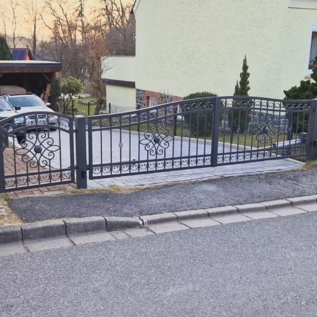 In dieser Galerie sehen Sie eine Auswahl bereits realisierter Zäune und Tore aus unterschiedlichen Projekten. Die Bilder zeigen verschiedene Stilrichtungen, Materialien und Ausführungen – von modernen Metallzäunen mit klaren Linien über klassische Zaunanlagen bis hin zu individuell geplanten Toranlagen für Einfahrten und Grundstückszugänge. So erhalten Sie einen direkten Eindruck davon, wie unterschiedlich sich unsere Lösungen an Haus, Grundstück und Umgebung anpassen lassen. Ob schlichte, elegante Optik, erhöhter Sichtschutz oder repräsentative Toranlage – jede Referenz zeigt, wie sich Funktion, Sicherheit und Design miteinander verbinden lassen. Nutzen Sie die Galerie als Inspiration für Ihr eigenes Projekt und entdecken Sie, welche Zaun- und Tormodelle am besten zu Ihrem Haus und Ihren Vorstellungen passen.