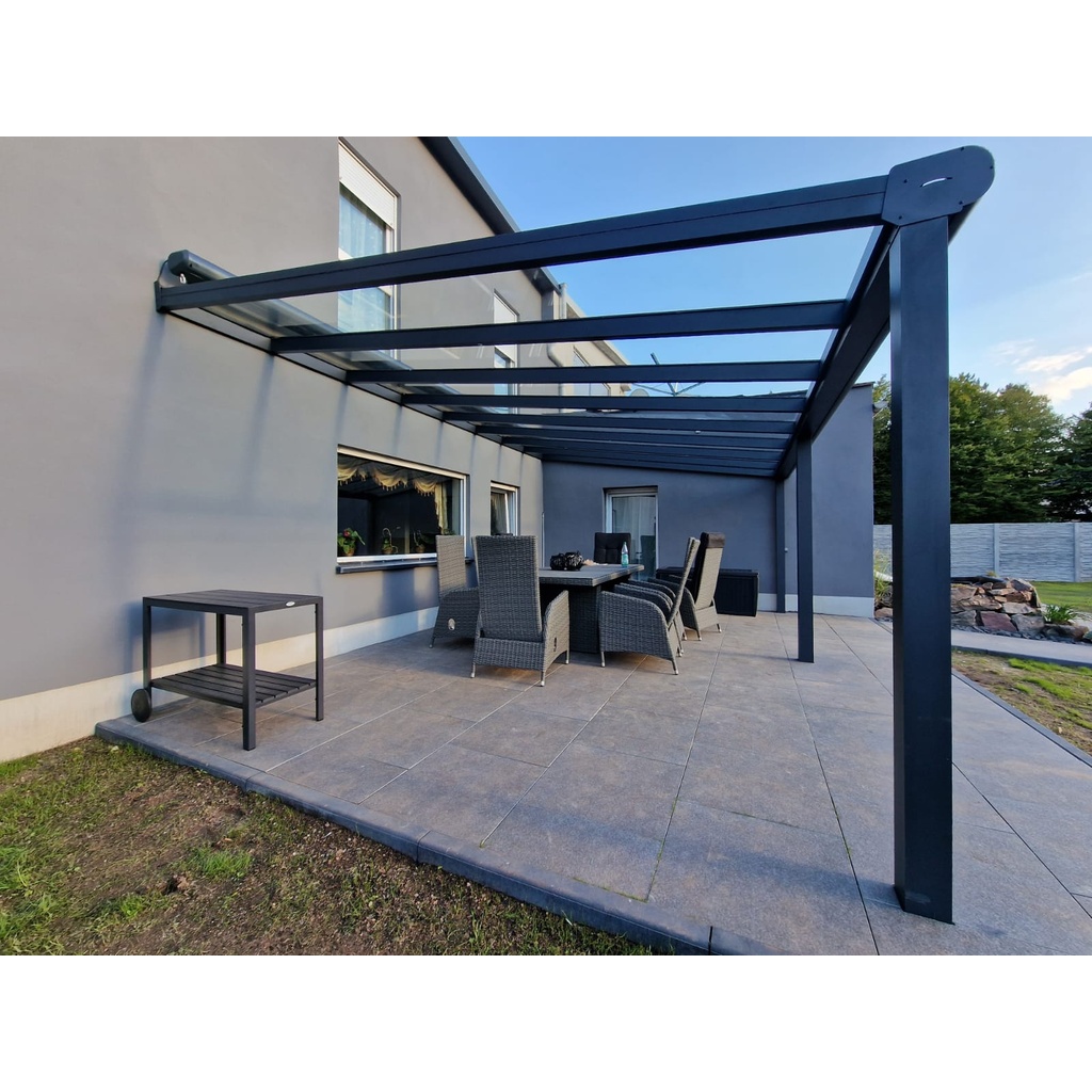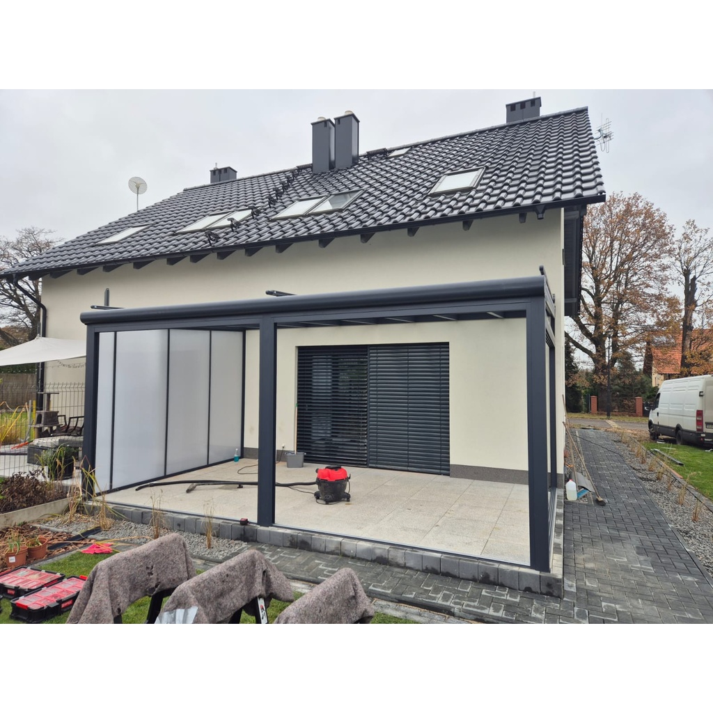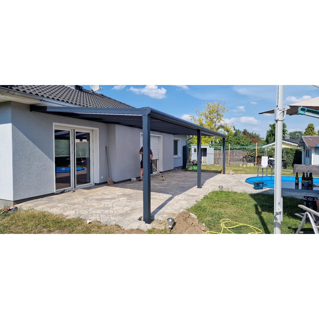 In dieser Galerie sehen Sie eine Auswahl bereits realisierter Terrassenüberdachungen und kalter Wintergärten aus unterschiedlichen Projekten. Die Bilder zeigen verschiedene Ausführungen – von klassischen Terrassendächern aus Aluminium über elegante Überdachungen mit Glas oder Polycarbonat bis hin zu erweiterten Lösungen mit Schiebewänden, die aus einer offenen Terrassenüberdachung einen geschützten kalten Wintergarten machen. So erhalten Sie einen direkten Eindruck davon, wie sich Funktion, Design und Wetterschutz sinnvoll miteinander verbinden lassen. Gleichzeitig zeigen die Referenzen, wie individuell sich jede Lösung an Haus, Terrasse und örtliche Gegebenheiten anpassen lässt. Ob offen, teilgeschlossen oder als heller Glasgarten – die Galerie bietet Ihnen viele Ideen und Inspirationen für Ihr eigenes Projekt.